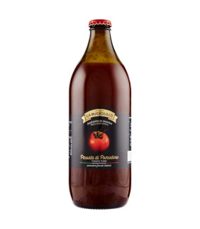 Passata di pomodori 100% italiani, dalla consistenza rustica e più grossolana, ottenuta da una lavorazione meno raffinata per mantenere la polpa naturale del pomodoro. Senza aggiunta di acido citrico o altri composti chimici, disponibile in bottiglia singola o confezione da 6 bottiglie.