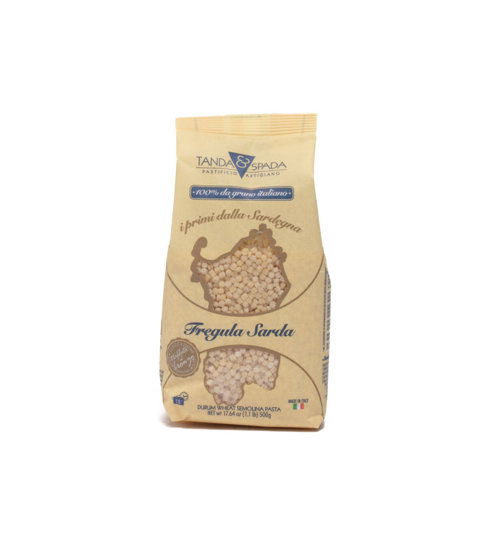 La Fregula sarda tradizionale 500 g × 12 pz è una confezione in cartone con 12 pacchi da 500 g di pasta tipica sarda realizzata con semola di grano duro e acqua, lavorata in piccole palline e tostata al forno per un sapore intenso e un profilo aromatico unico. Questo processo di tostatura le conferisce una consistenza rustica che tiene bene la cottura e valorizza qualsiasi condimento.